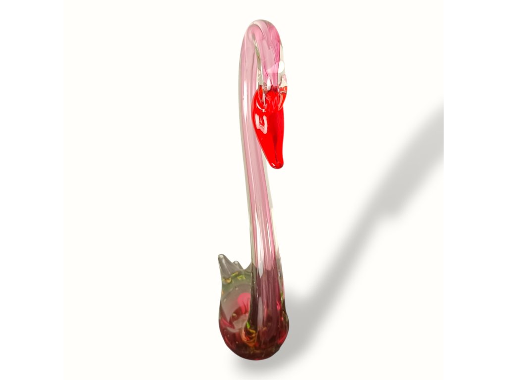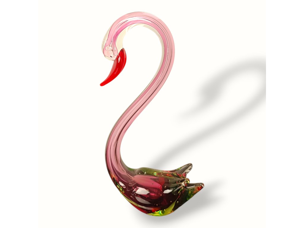 Vneste do svého interiéru nádech elegance s touto ručně vyráběnou křišťálovou labutí. Skulptura z foukaného skla zaujme ladným tvarem, jemně zakřiveným krkem ve tvaru písmene S a harmonickým přechodem barev – od světle růžové přes sytější tóny až po zelenkavý základ. Červený zobák dodává celku výrazný kontrast a podtrhuje její osobitý charakter.